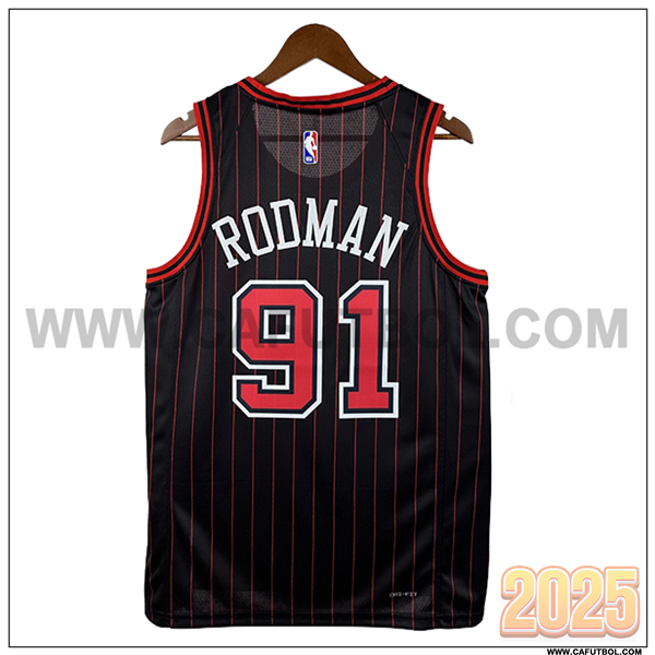 Camisetas NBA Chicago Bulls (RODMAN #91) 2025/26 Negro/Rojo -03
