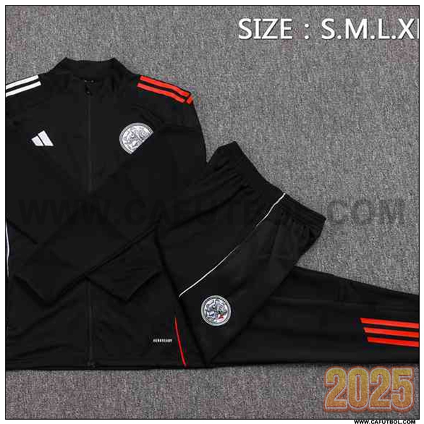Chandal de Futbol Ajax Negro/Rojo/Gris 2025 2026