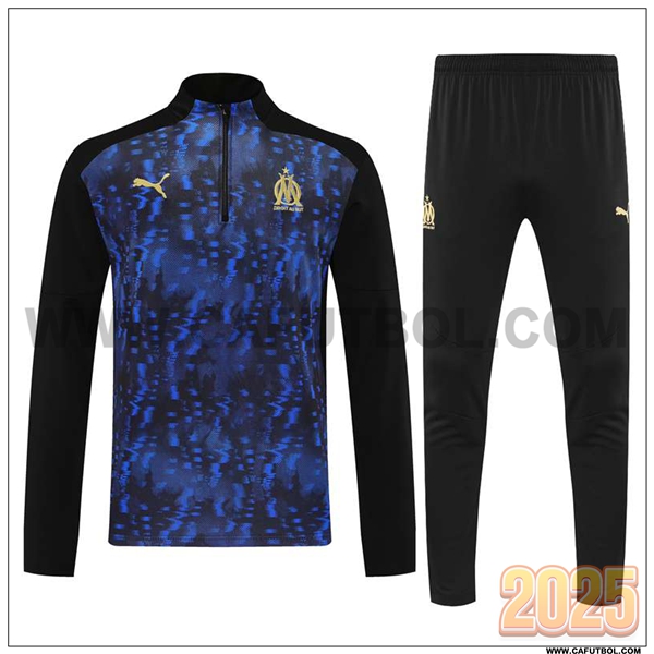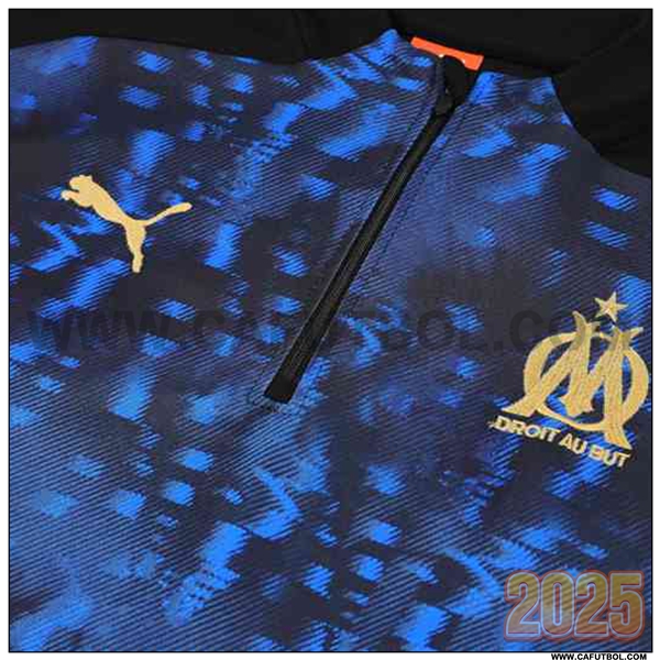 Chandal de Futbol Marsella Negro/Azul 2025 2026