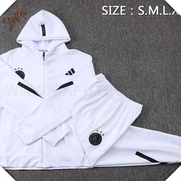 Chaqueta Con Capucha Chandal Rompevientos Ajax Blanco/Negro 2025/2026