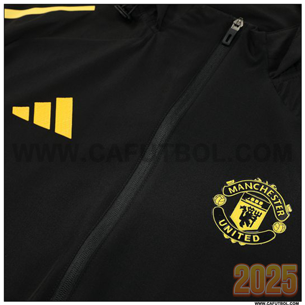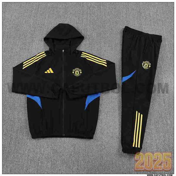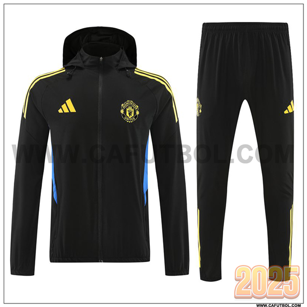 Chaqueta Con Capucha Chandal Rompevientos Manchester United Negro/Amarillo/Azul 2025 2026