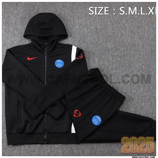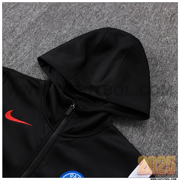Chaqueta Con Capucha Chandal Rompevientos PSG Negro/Blanco 2025/26
