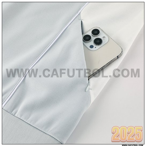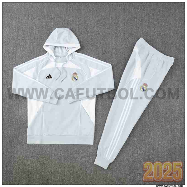 Chaqueta Con Capucha Chandal Rompevientos Real Madrid Gris/Blanco 2025 2026