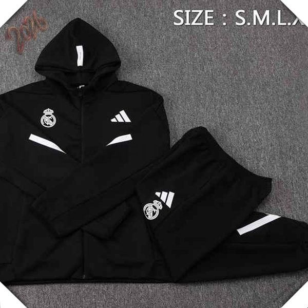 Chaqueta Con Capucha Chandal Rompevientos Real Madrid Negro/Blanco 2025/2026
